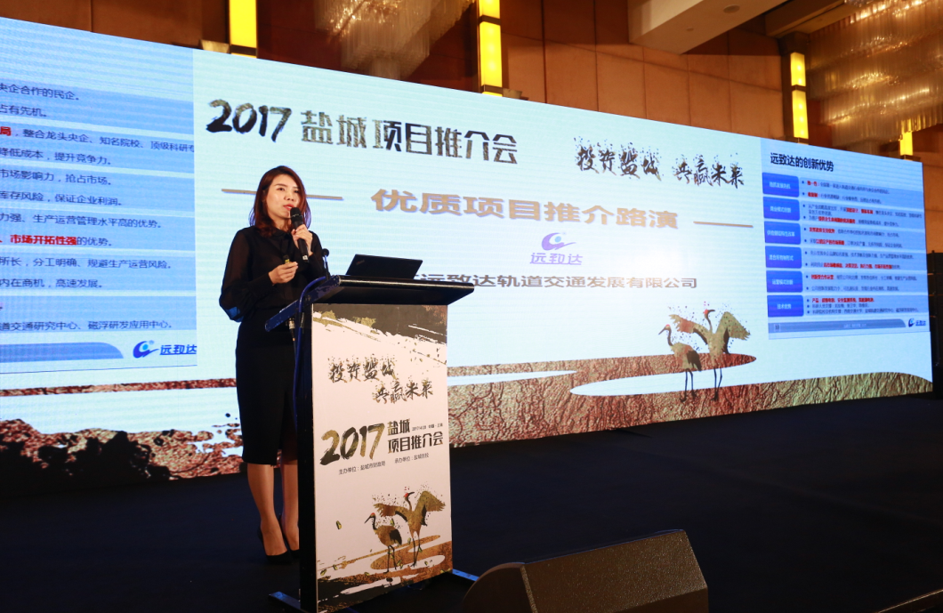 2017年4月20日下午,由鹽城市財(cái)政局主辦的“投資鹽城、共贏未來”2017年鹽城項(xiàng)目推薦會(huì)在上海舉辦,包括浙商創(chuàng)投、長城證券、九鼎投資、磐石資本、悅達(dá)資本等60家投資機(jī)構(gòu)與鹽城創(chuàng)新項(xiàng)目企業(yè)齊聚一堂,江蘇遠(yuǎn)致達(dá)軌道交通發(fā)展有限公司作為鹽城6家重點(diǎn)推介項(xiàng)目之一進(jìn)行了現(xiàn)場路演,得到了投資方點(diǎn)評(píng)嘉賓的專業(yè)點(diǎn)評(píng),吸引了眾多投資人的關(guān)注。