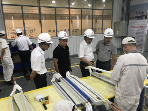(圖為唐明春、曹翰清等人參觀電機(jī)生產(chǎn)工藝)