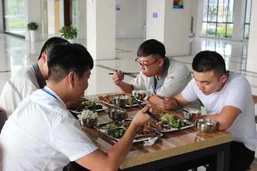 怎樣才能讓員工吃得好、吃得滿意、吃得舒心、吃得放心始終是公司綜合辦一直追求的工作目標(biāo)。新籌建的員工餐廳堅(jiān)持高起點(diǎn)、高標(biāo)準(zhǔn),菜肴常翻新,提供多種菜式供員工選擇。食堂菜品講究葷素合理搭配不油膩,品相也不錯(cuò)。