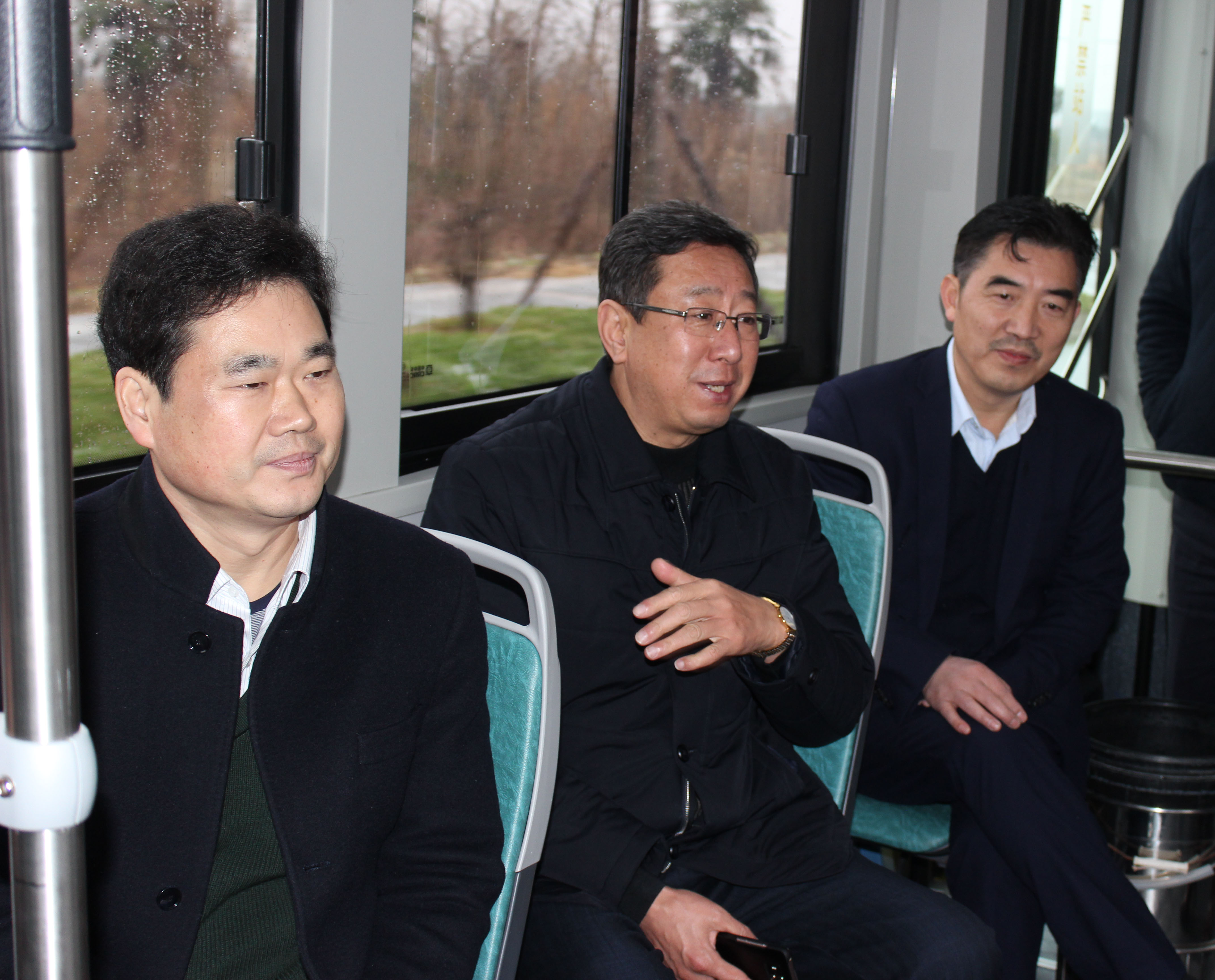 (圖三:考察團(tuán)試乘亭湖區(qū)75路超級(jí)電容現(xiàn)代電車)