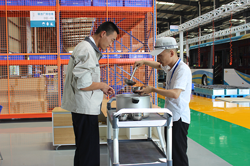 正在給每位車(chē)間工人準(zhǔn)備飲料和綠豆湯