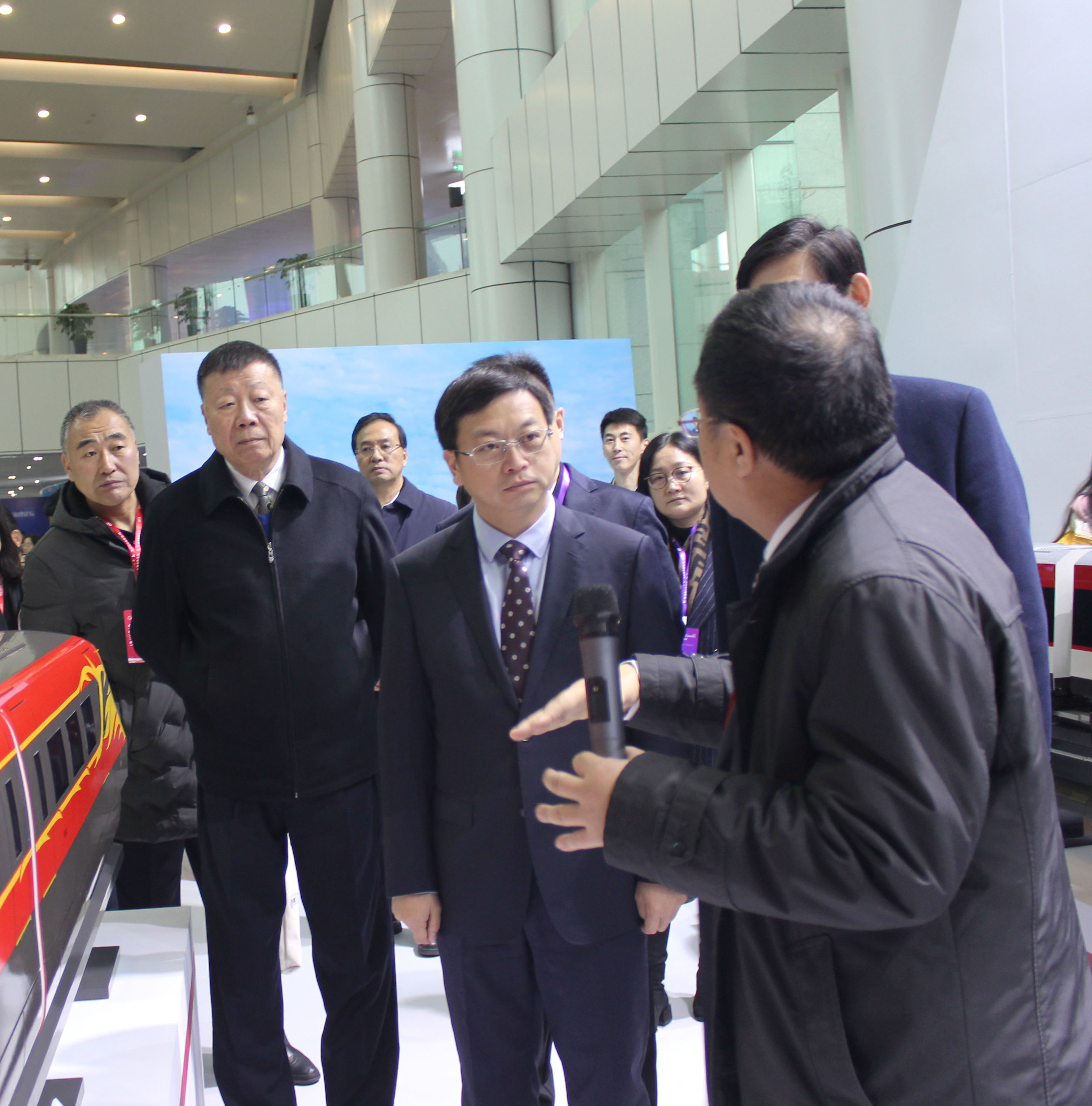 江蘇中車城市交通裝備有限公司(以下簡稱“江蘇中車”)以承辦方身份參展。曹路寶等領導考察江蘇中車展臺,中國中車集團首席科學家、中車株洲電力機車有限公司(以下簡稱“中車株機公司”)副總工程師楊穎陪同并做相關介紹。