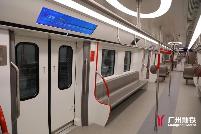 列車既包含廣州地鐵特征元素,又融入高鐵動車特點。客室內(nèi)部延續(xù)簡約現(xiàn)代、通透明亮的風(fēng)格,座椅采用橫縱結(jié)合布置,深空灰不銹鋼座椅搭配地鐵紅。
