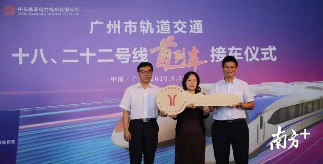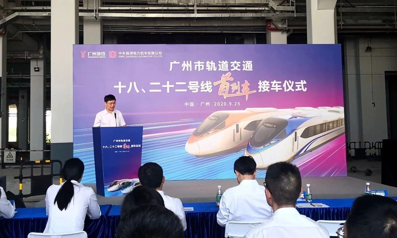 9月25日,中車株機公司研制的廣州地鐵18、22號線首列車正式交付。廣州地鐵集團總經(jīng)理劉智成、副總經(jīng)理蔡昌俊,中車株機公司總經(jīng)理傅成駿,副總經(jīng)理肖高華、徐海霞等出席首列車交接儀式。