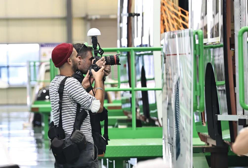 一進入位于鹽城環(huán)??萍汲堑闹熊嚬粳F(xiàn)場,媒體記者便被偌大的廠房、先進的設(shè)備吸引,紛紛拿出相機拍照。來自歐新社的塞爾維亞籍記者Aleksandar Plavevski表示,中車公司車間的現(xiàn)代化程度,就算是放在歐洲也是數(shù)一數(shù)二的。生產(chǎn)出來的SRT列車,他也是第一次看到。聽說在鹽城已經(jīng)有車輛在試運行,他非常期待有機會試乘體驗一次。